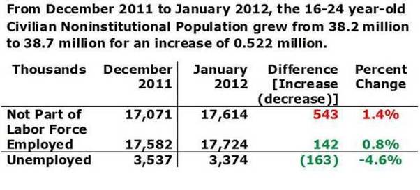 In the January 2012 Employment Situation (released February 3, 2012), published by the U.S. Department of Labor, Bureau of Labor Statistics seemed to present a glowing picture: