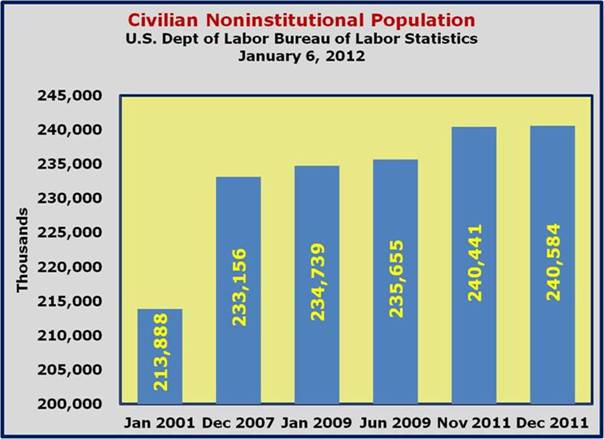 In a week or so, we will be presenting a deeper look into the labor force participation rate and how it impacts the overall employment picture. In the meantime, we'll analyze the current data based on the Employment Report from Friday, January 6, 2012.
