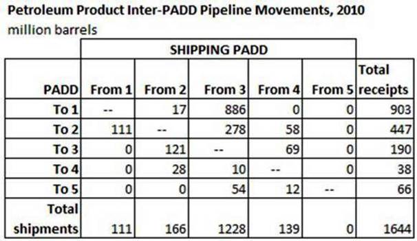 Dating from World War Two, the U.S. is divided up into what are referred to as Petroleum Administration Defense Districts or PADDs. In mobilizing for a wartime economy, established to help efficiently and expediently allocate petroleum products (primarily gasoline and distillates - diesel fuel).