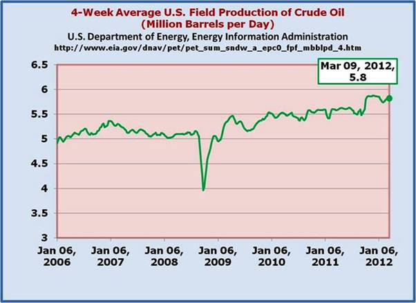 When the economy expands, the consumption of crude oil will likely rise to the 20 to 21 million barrel per day range, where it was just a few years ago. As a percentage of the world oil usage, the U.S. has been consuming a shrinking portion for the last ten years or so.
